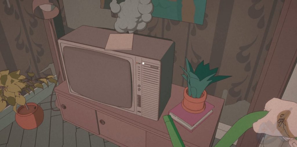 The next achievement unlocks right after you celebrate your paper plane success and Kolja starts talking about the poor plants. Pick up the watering can and head directly toward the TV on the left, then pour water on it until it buzzes. This unlocks the achievement.
