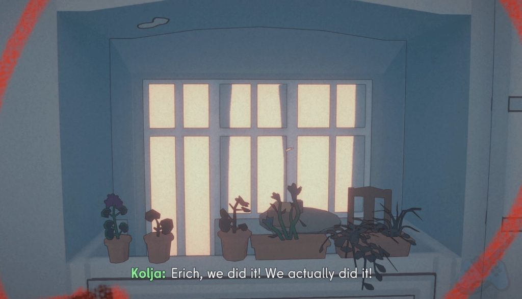 The next achievement unlocks right after you go into the hallway of your apartment to call the number you received. Once Kolja gets rejected due to a busy line, head back to the room with the window where Erich is. Make sure to always check if Erich wants to talk, this is needed for another achievement later.