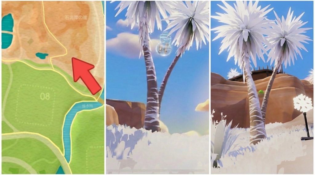 The next egg for day 10 is at the beach, between two palm trees. The bubble is at the edge of onsen mountain, also between two palm trees. See map below.