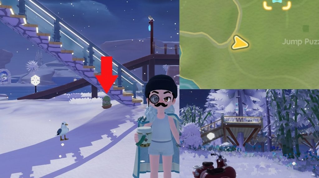 The third egg is directly on the long ladder at the beach, and the bubble inside the forest next to the JUMP PUZZLE (on map).