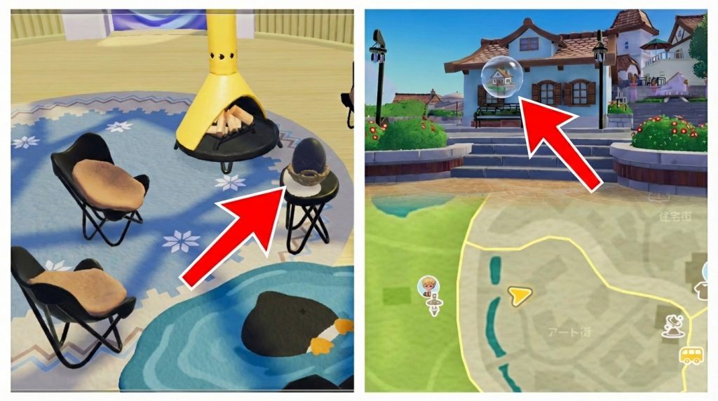 The second egg is right at the Ice Rink at the beach, and the bubble is at the edge of the town, floating around a sunshade (marked with arrow).