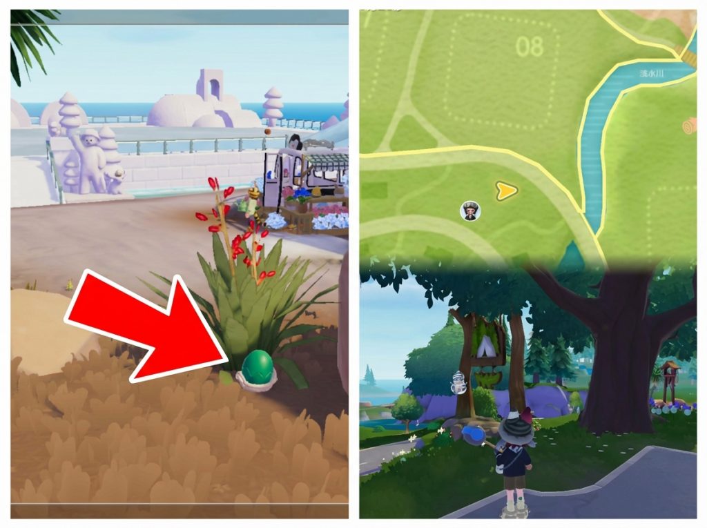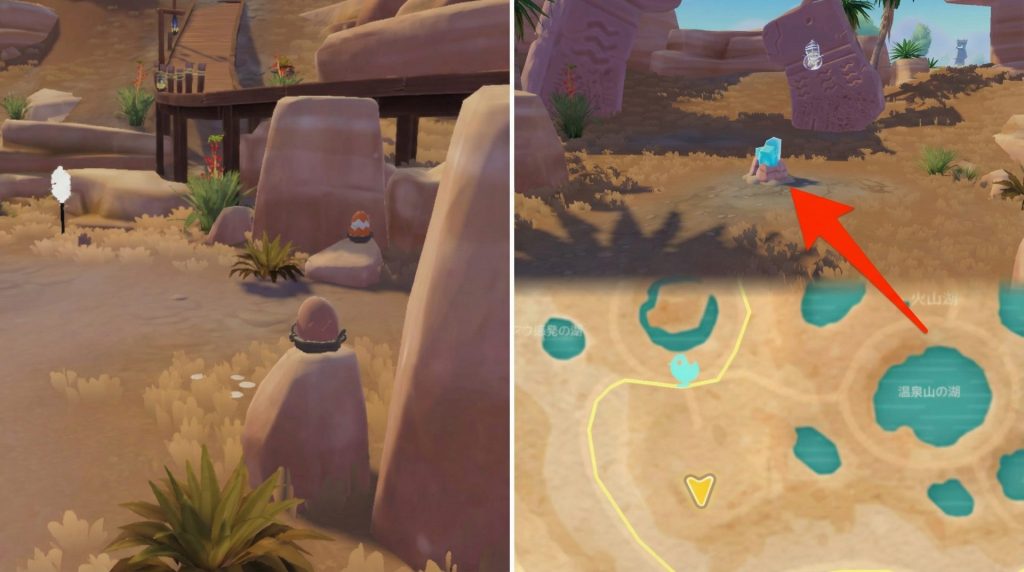 The next egg for day 10 is at the beach, between two palm trees. The bubble is at the edge of onsen mountain, also between two palm trees. See map below.